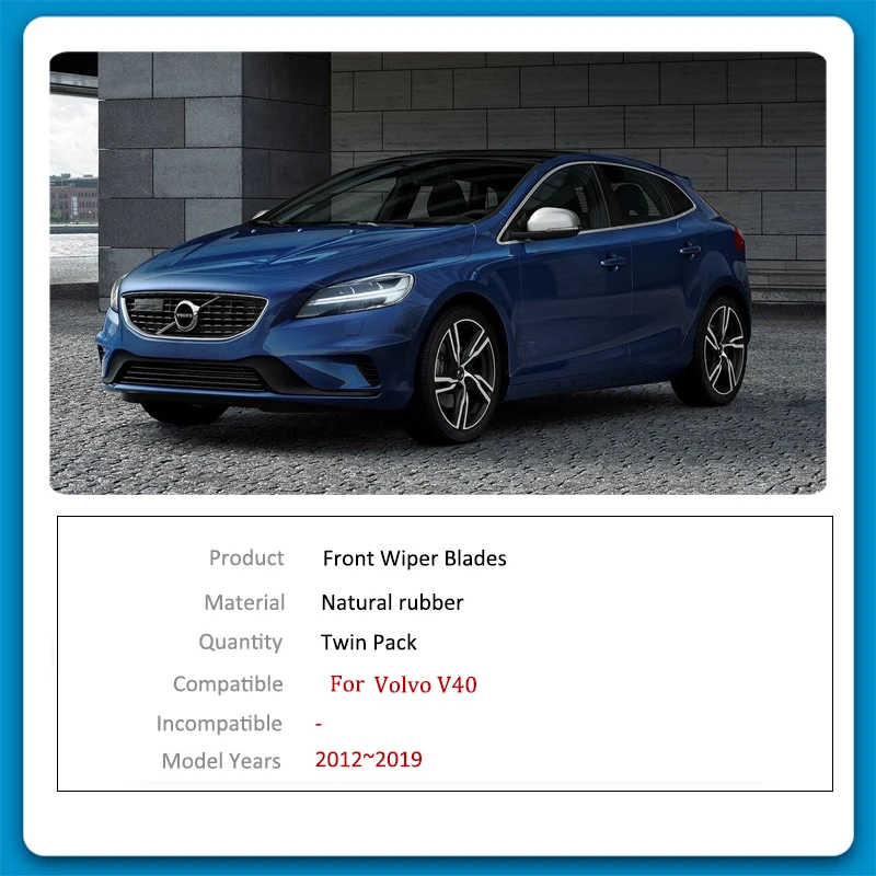 For Volvo V40 2012 2013 2014 2015 2016 2017 2018 2019 Front Wiper Blades Brushes Cleaning Windscreen Windshield Car Accessories