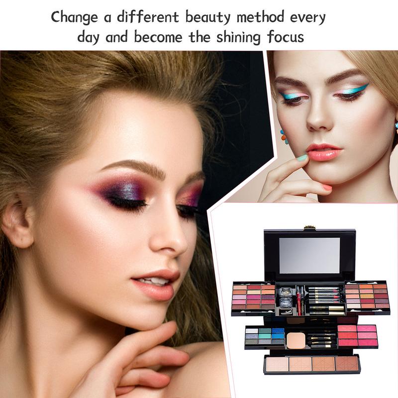 • This makeup kit can meet your basic makeup needs. It can create a perfect makeup look for you. It contains lip gloss, eye shadow, blush, contouring, lipstick, highlighter, brush, etc. It is easy to carry with a handle. It is portable, you can use it anywhere. It is equipped with mirrors and corresponding recesses for cosmetics and tools. It has many functions, is very complete, suitable as a birthday gift, holiday gift to friends or family, your friends will be very satisfied.
