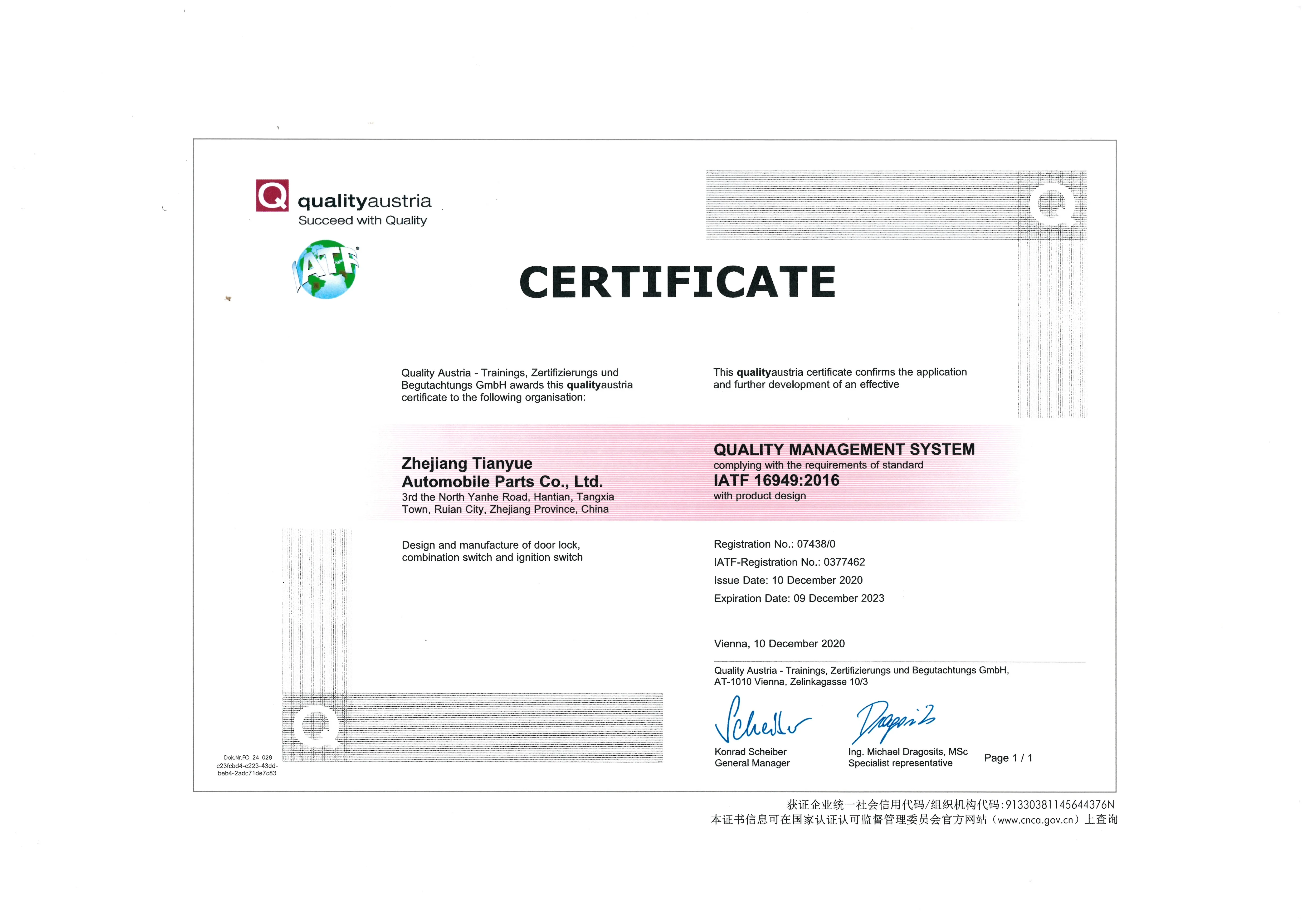 Zhejiang Tianyue Automobile Parts Co.,Ltd.was founded in 1984, with the spirit of technological innovation, independent research and development, sustainable development and pioneering spirit. At present, the company has developed into a company with professional production capacity for the production of automotive electric door locks, and has formed an industrial cluster of R&D, manufacturing, and sales for the integration and comprehensive utilization of superior technical resources. Tianyue people take the enterprise spirit of "harmony, refinement, innovation, and integrity" to create a brilliant tomorrow; constantly enterprising and pursuing excellence, creating newer and more perfect product value for customers.