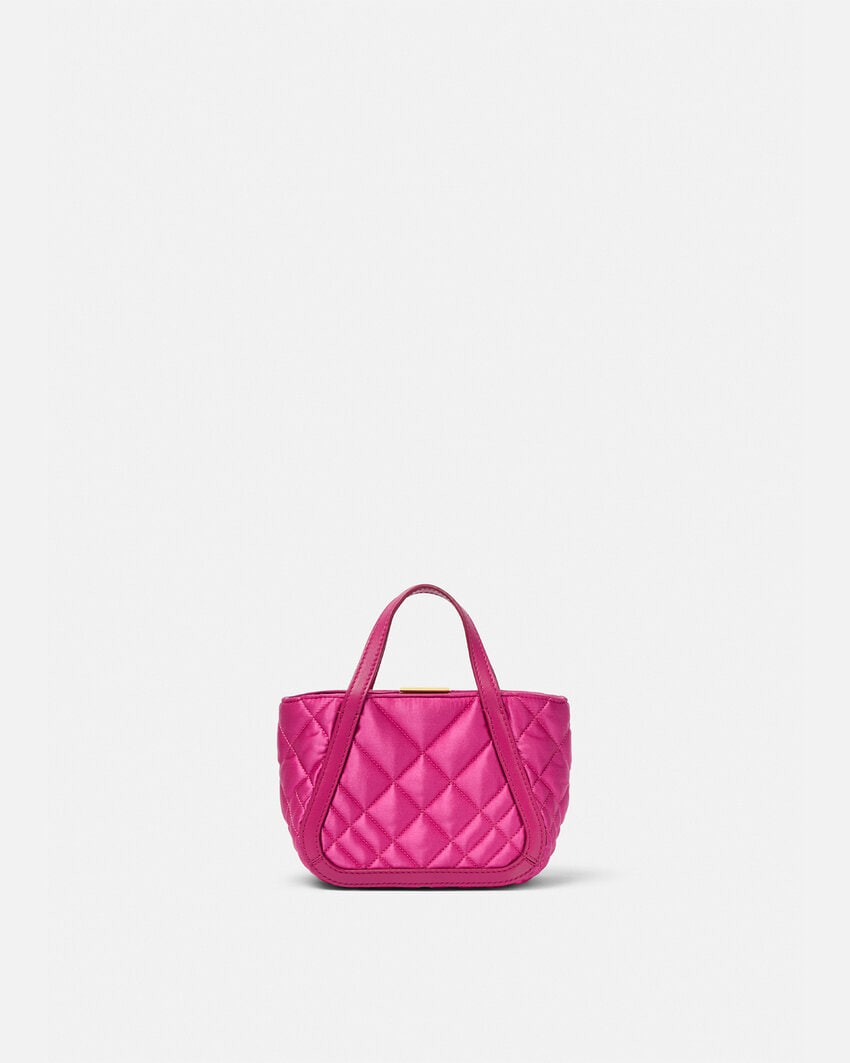 Mini bag in satin with quilted pattern and leather trim. The style features signature Greca chain hardware and is embellished with crystals in different sizes. The style features top handles and a detachable leather chain strap at the shoulder, allowing it to be worn cross-body or by hand.