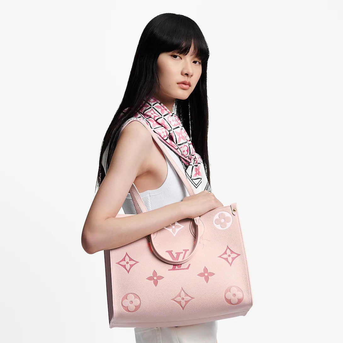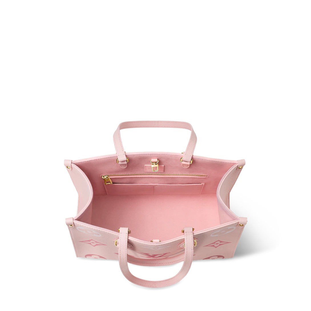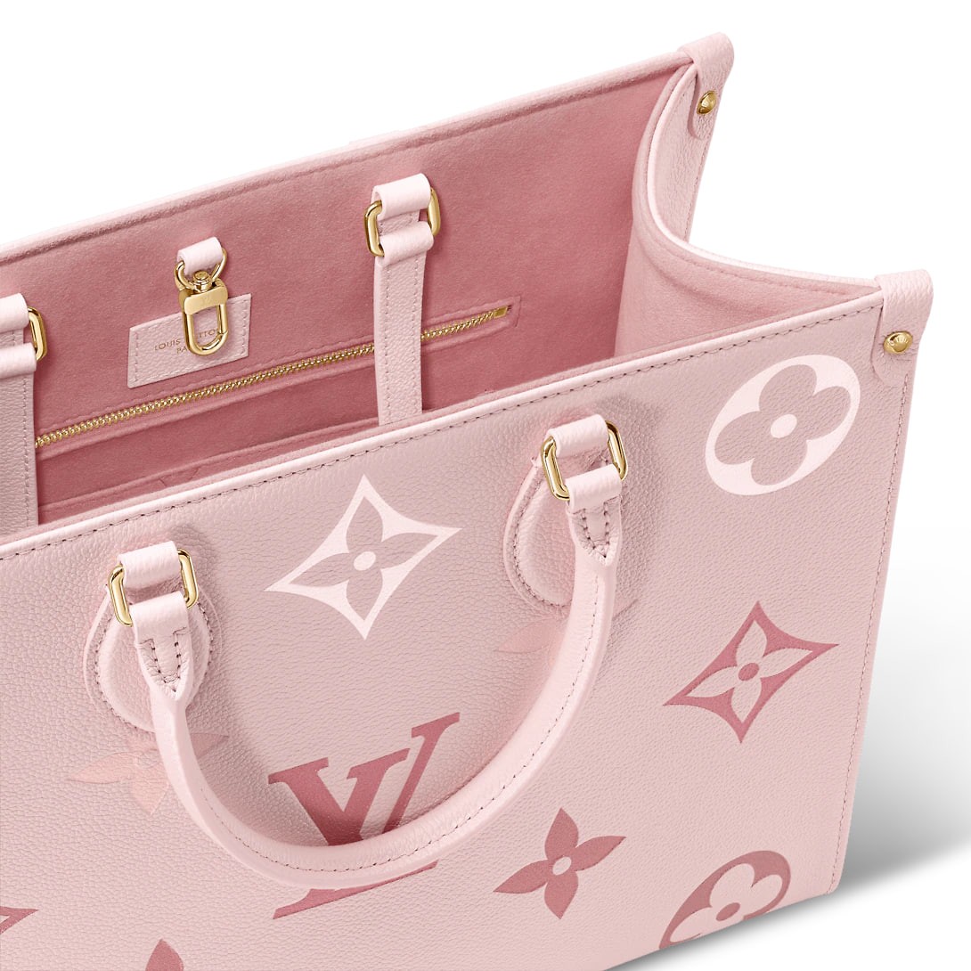 Crafted from Monogram Empreinte leather, this OnTheGo medium bag has a gradient of colour that spreads across the body and dissipates at the handle. The medium form has plenty of room for laptops and other everyday items. Roll-on leather handles and long straps allow you to carry over the shoulder.