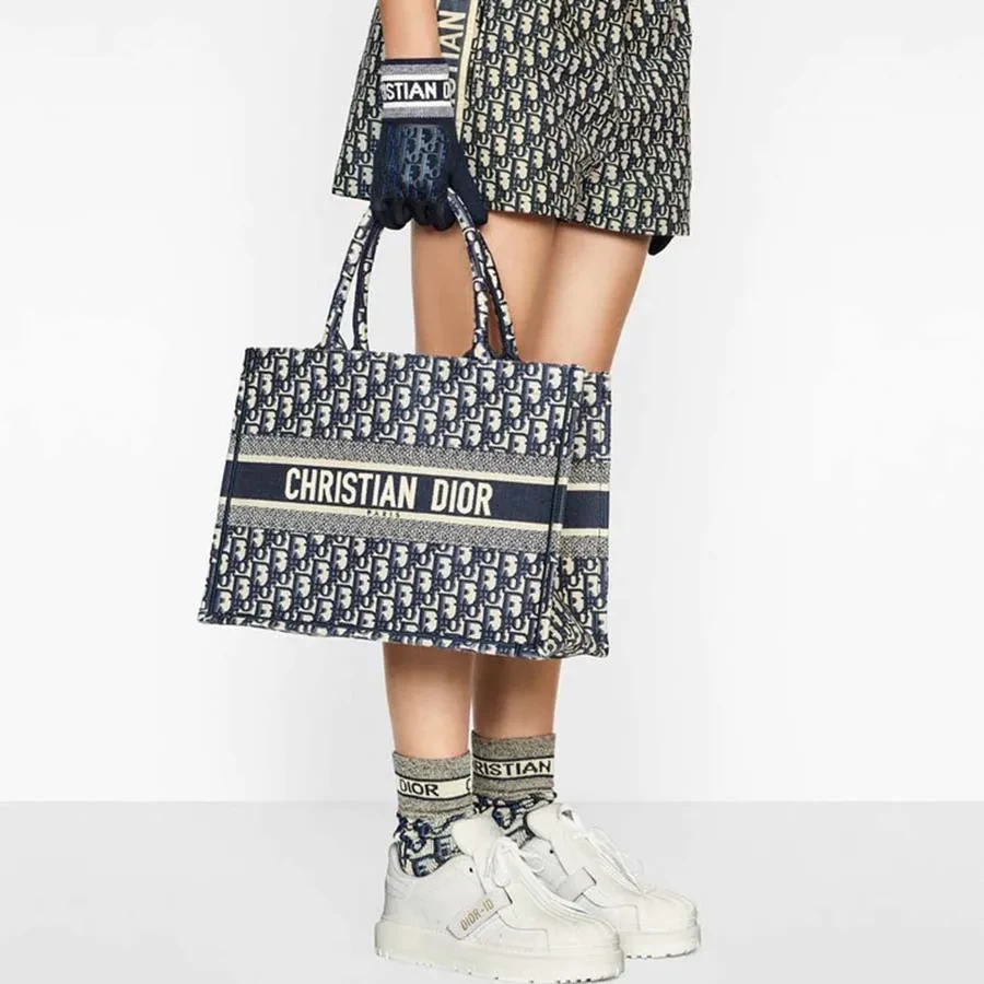 Dòng túi Dior Book Tote Bag được mệnh danh là chiếc túi xách "đựng cả thế giới", dành riêng cho giới thượng lưu. Dior Book Tote Medium Blue Dior Oblique Embroidery M1296ZRIW M928 sau khi ra mắt liên tục cháy hàng. So với các dòng túi đến từ thương hiệu Dior thì dòng túi này tạo ấn tượng nổi bật hơn hẳn lại rất tiện lợi.