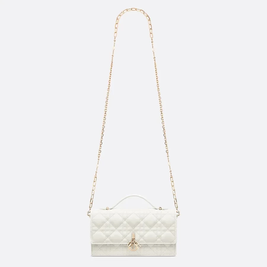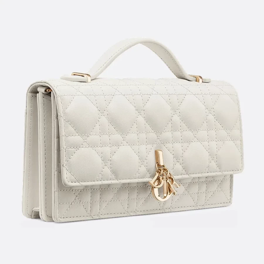 Túi xách tay nữ Dior My Dior Mini Bag Latte Cannage Lambskin màu trắng là biểu tượng của vẻ đẹp tinh tế và sang trọng. Thiết kế nhỏ gọn với chất liệu da mềm mịn, kết hợp họa tiết đặc trưng và gam màu trắng thanh lịch, mang đến phong cách nhẹ nhàng nhưng đầy cuốn hút. Chiếc túi là điểm nhấn hoàn hảo cho các quý cô yêu thích sự nữ tính và đẳng cấp, phù hợp cho cả dạo phố, dự tiệc hay những dịp đặc biệt.